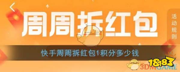 以上就是小编带来的快手周周拆红包一积分多少钱?积分兑换现金比例介绍了,更多相关资讯教程,请关注18183手游网。