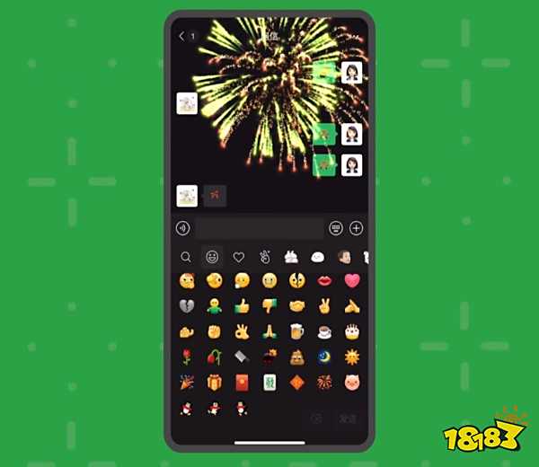 6、新增了自带表情包中特殊表情的全屏动画,比如“庆祝”会满屏放烟花。