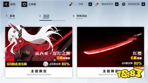 这个卡池中我们需要80-100次抽卡才会有一个初始S的保底,其中80%是露西亚深红之渊,但是他在保底之前出S的概率是1.9%,这个卡池小编是推荐新手玩家们抽的卡池,单抽概率很高,十连概率也不错,基本上不用等到保底就能出S露西亚。