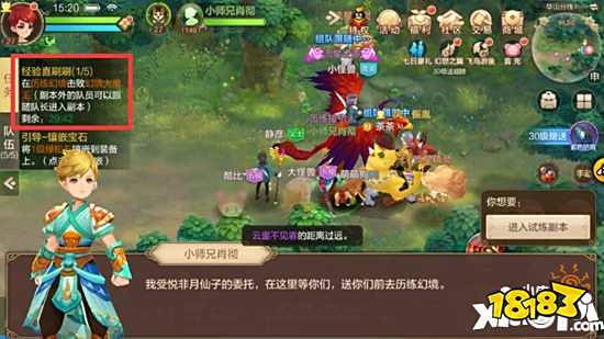 在与悦非月聊天一天之后,试用副本将自动发送到经验喜刷刷试用版的位置,并且在所有人员到达之前不能进入试用副本。